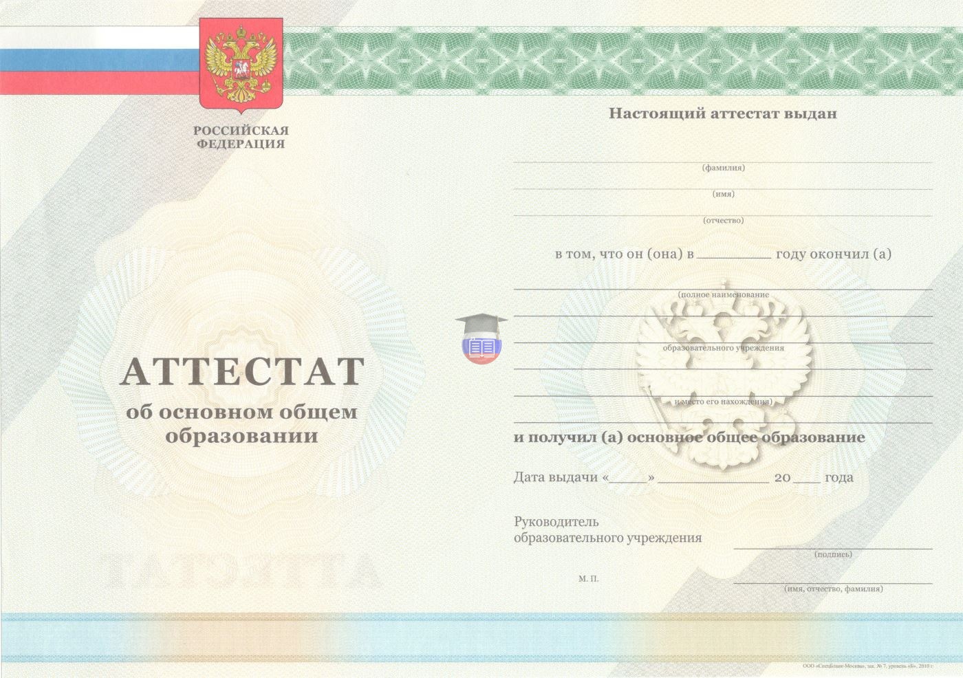 Аттестат об основном общем образовании — документ, выдаваемый ученикам общеобразовательной школы после окончания девяти классов. Документ позволяет поступать в колледж или техникум, либо продолжать учебу в школе. При заполнении не допускаются ошибки, исправления, помарки, пропуски строк, пятна типографской краски, нечеткий шрифт. Оттиск печати учреждения — четкий, легко читаемый.