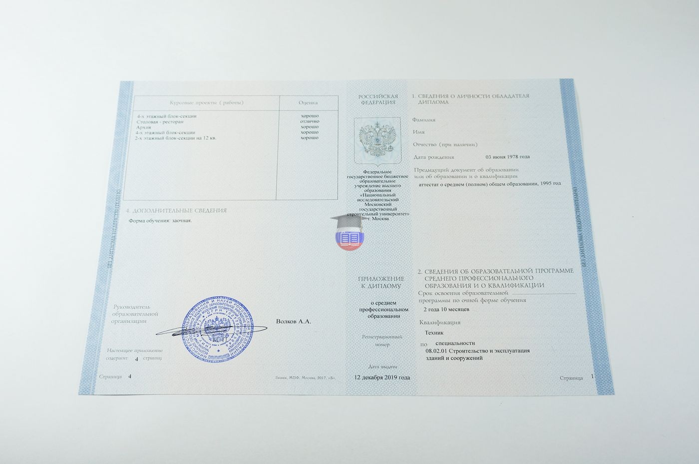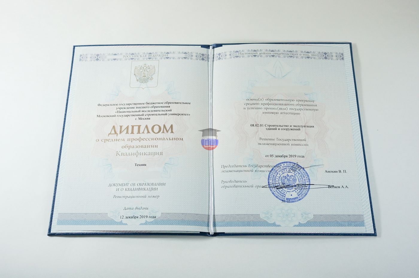 Пример заполненного диплома колледжа / техникума (ГОЗНАК)